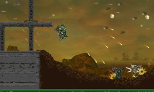 《重装武器》(GIGANTIC ARMY)是Nyu Media发行的一款动作射击类游戏,该款游戏与《合金弹头》有点相似。游戏采用了2D画面,背景主要以山川大海为主,绚丽的爆炸让画面显得更加壮观,同时还配有快节奏的音乐,符合的战争的整个场景。