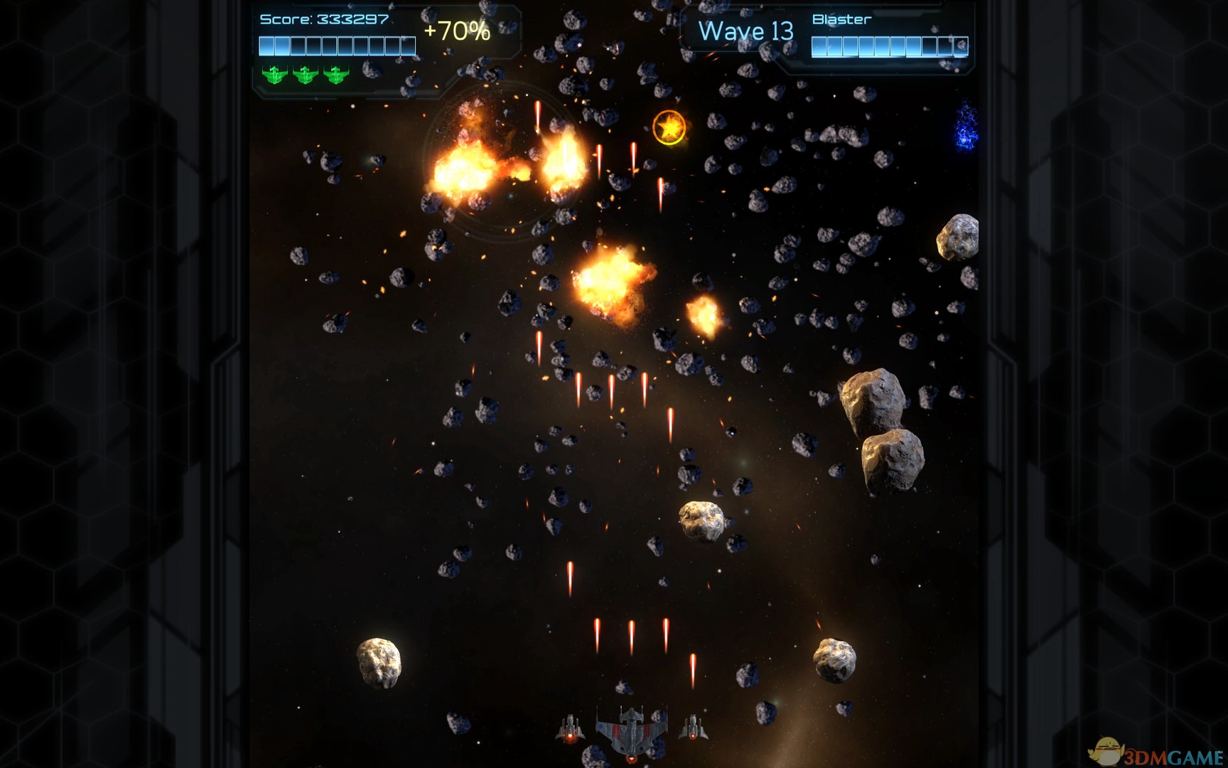 在该作品中玩家将扮演一个有着高超飞行技艺的飞行员,你将驾驶自己的飞船在浩瀚的宇宙中和敌人战斗。通过小行星带,躲避呼啸而来的敌方子弹,收集各种能量,通过获得道具,你可以实现不同武器的切换,各种武器射击效果不同,杀伤力各异。在抵抗海盗,叛军和外星人的一波波进攻中,提升经验,升级自己的等级。