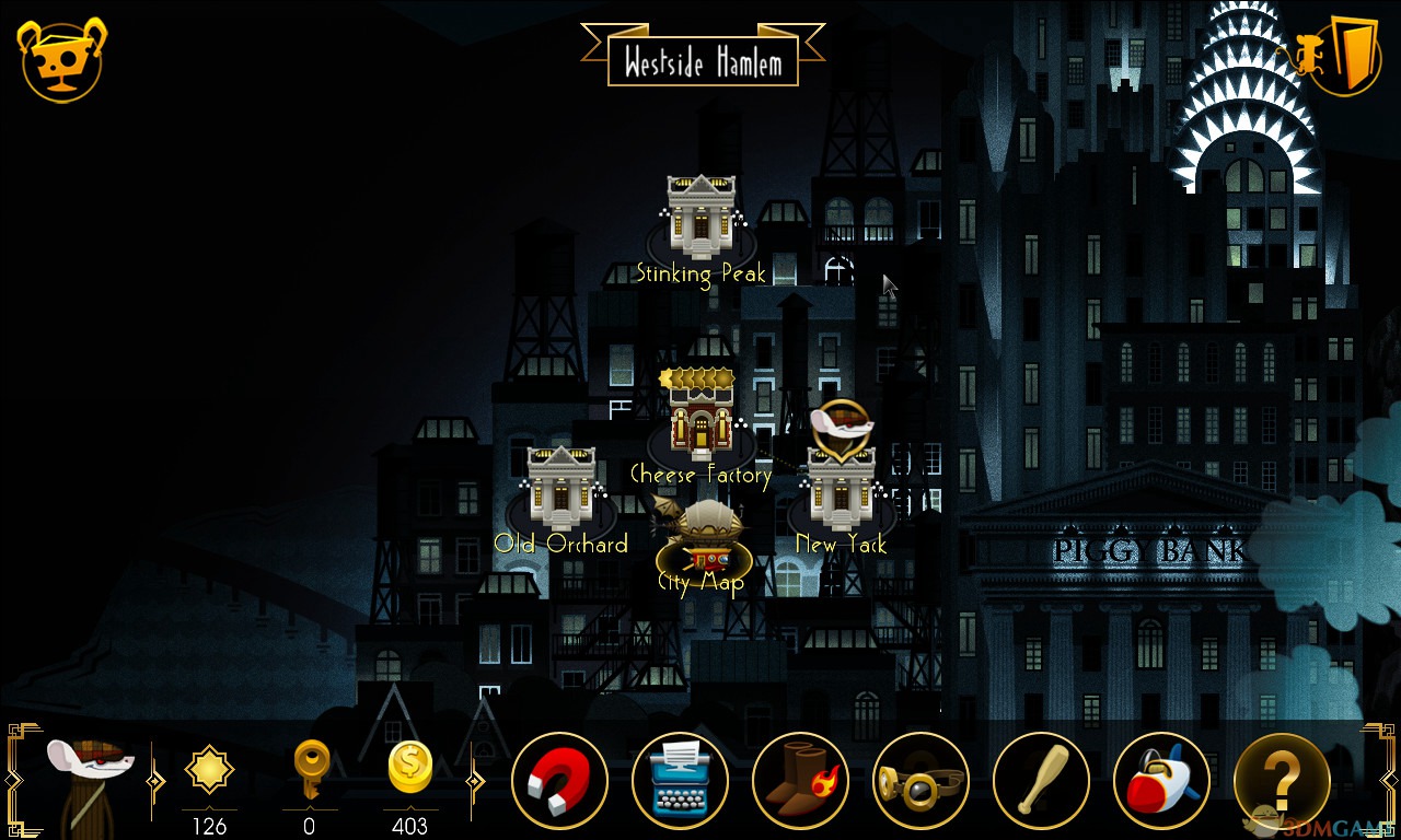 《大盗鼠:时不我待(Rats - Time is running out!)》是由开发商Citeremis推出的一款动作闯关策略游戏。以老鼠为题材,并采用了快节奏的玩法。 游戏中,玩家要操控大盗鼠潜入银行,在猫、狐狸、鸡等各种动物守卫的眼皮底下作案,偷盗各种金币。玩家可以利用各种奇葩的工具来引开动物守卫的注意,比如打字机、护目镜甚至是芝士,或者是隐形和加速类的道具。游戏将有30个盗贼关卡和15个挑战关卡。