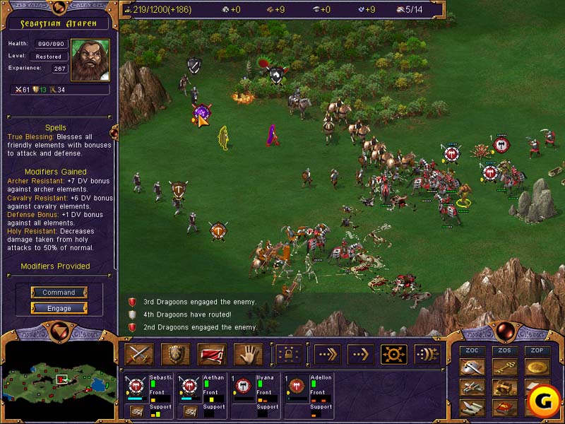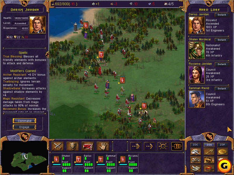 但是在《可汗》中,英雄仅是庞大而复杂的军队系统中的一小部份。尽管玩家希望英雄能够率领尽可能多的部队,但更重要的是懂得如何以巧计妙施的方式组建自己的部队。每支部队——换而言之,连队——由指挥官、主体部队和两支支援小组构成。如果已有可汗英雄听从玩家调遣,那么玩家即可将其任命为一支连队的指挥官。