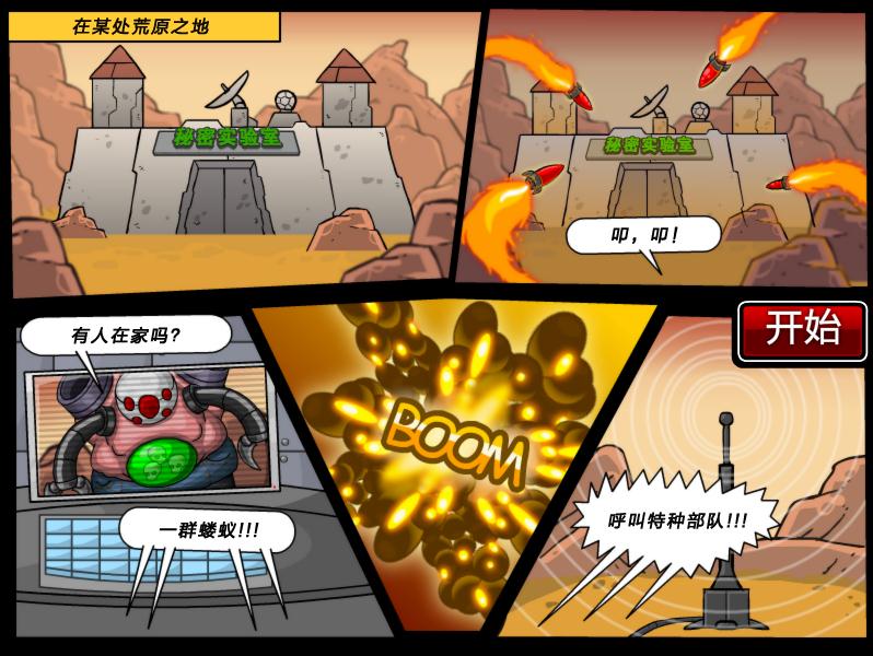 《荒原之战(Wild Wastelands)》我们的基地遭到了外星人的攻击,到处都是辐射污染,现在外星人占据了我们的基地,快来控制我们的勇士消灭这群没有人性的外星人吧!提示:外星人的武器威力巨大,注意躲避。