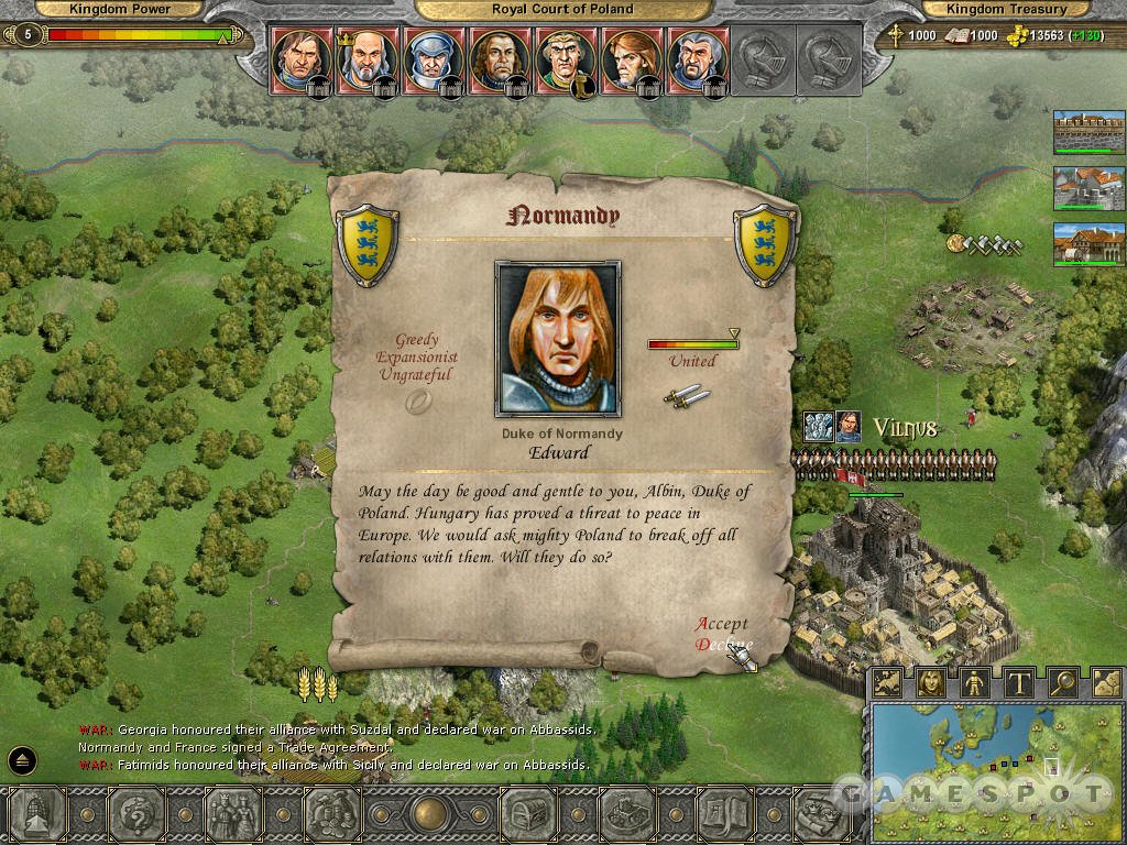 《荣誉骑士(Knights of Honor)》,后文简称KoH,是保加利亚游戏开发小组Black Sea Studios制作的一款即时战略游戏。初看之下,玩家会觉得该游戏与“帝国时代”(Age of Empires)或是其他一些以中世纪战争为背景的战略游戏相似;但是进一步深入这款游戏之后,相信玩家将会发现这种所谓的相似仅是表面现象。因为KoH所涉及的范围更为广阔,内容也更为丰富。按照Sunflowers Int.的话来说,KoH并不是传统的即时战略游戏,而是“征服帝国”的模拟游戏。在KoH中,玩家的最终目的就是要运用战争、外交和间谍等策略来统治整个中世纪欧洲。