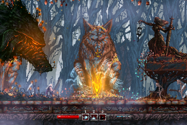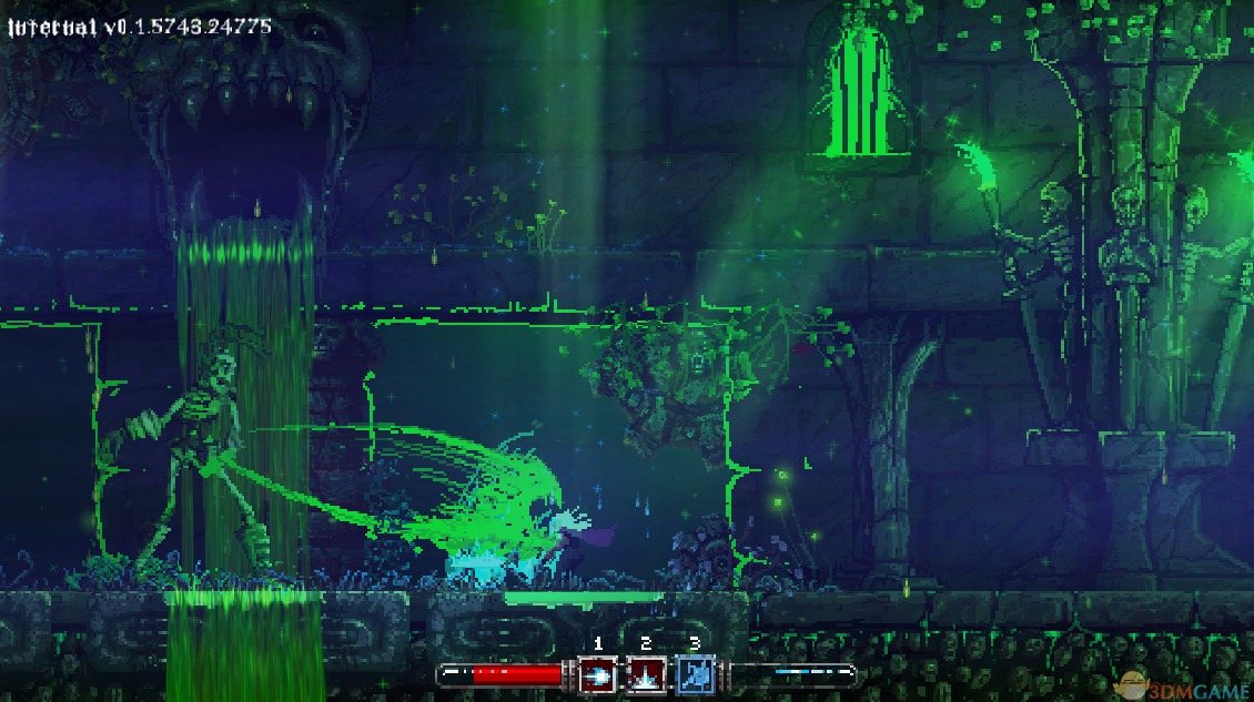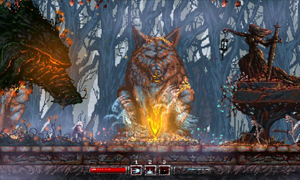 游戏的画面还是比较有特色的,整体采用了恶魔城的风格。游戏中一些景物细节描绘也很精细,但是组合在一起就显得很乱,动起来更是让人头晕。喜欢这个风格游戏的玩家还是值得尝试一下的。