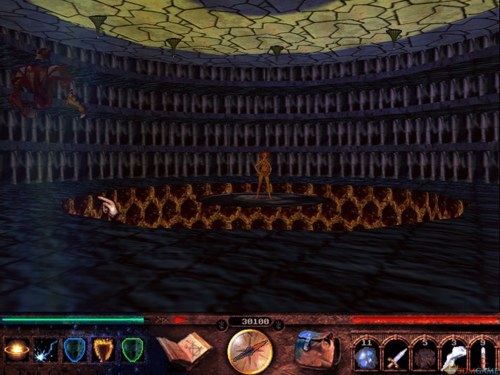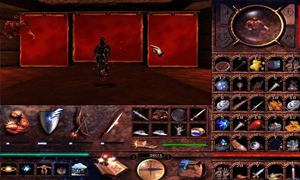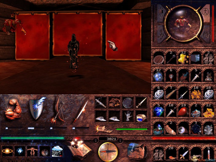 《大地传说1+2》操作方法(以选择Conrad为例)主要为鼠标点击,游戏界面上前后左右及左右转向箭头,玩家通过鼠标点击对应箭头来实现人物的的移动,通过点击人物头像即可进入装备栏并同时可以查看当前人物的各项属性,点击头像右侧按钮可以使用角色进行物理攻击或魔法攻击,屏幕下方为物品栏,玩家在冒险的过程中收集到的物品均会出现在该栏内。