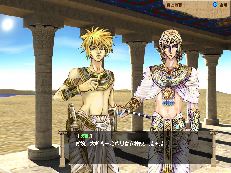 身为神殿首席大神官-席德-的玩家,没有记忆、没有法术,却还要解决埃及的灾难与命运。神殿财库贫瘠的状况下,还必须要兴建魂之塔。 达克城遭屠城,埃及城内战争的流言四起?谁又是领有神的旨意之人?身为席德大神官,您要如何破解一个比一个更棘手的问题。