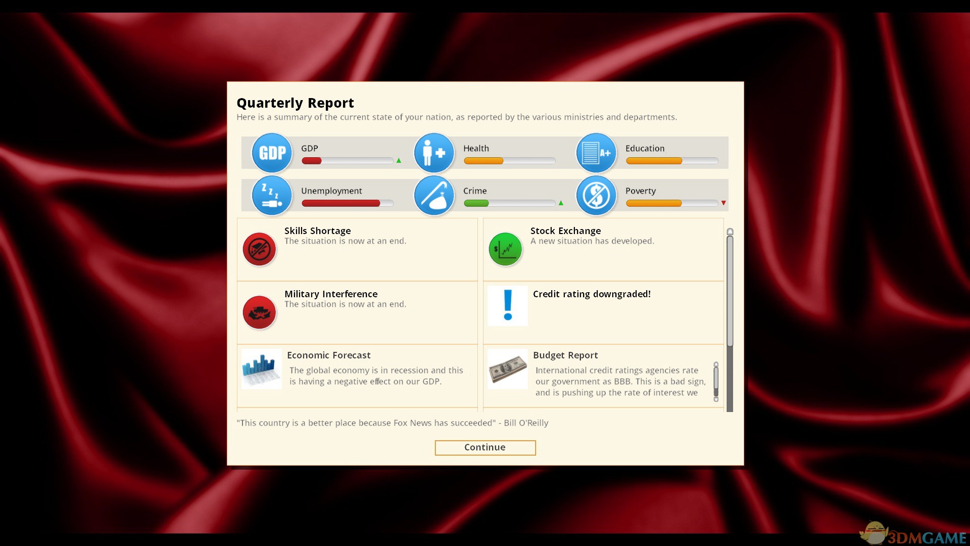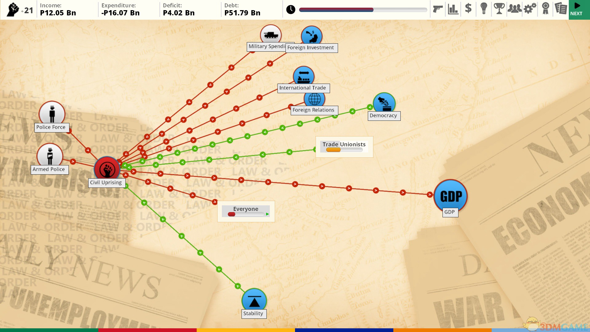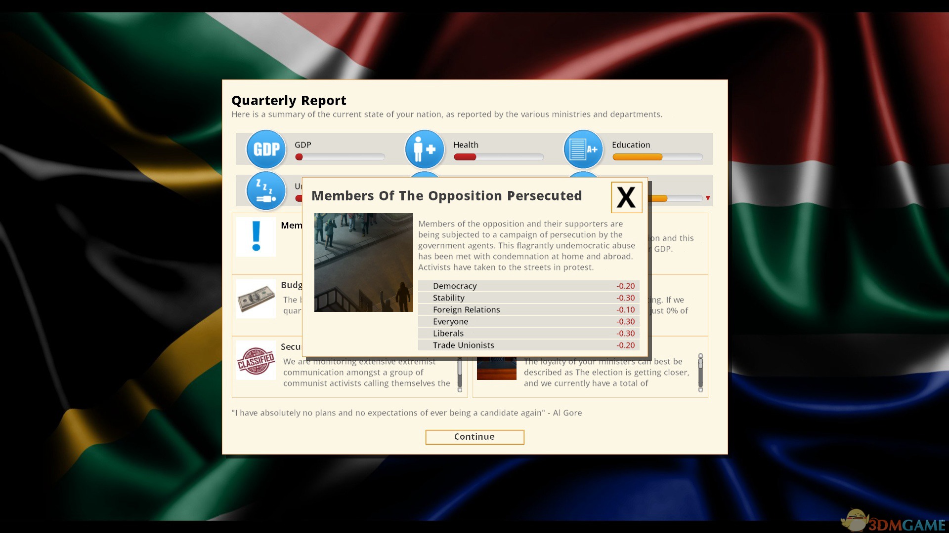 民主制度3:非洲是以策略战棋元素为主要内容的一款游戏,本作的制作发行是由Positec工口GAMEs完成。游戏中你要管理整个的国家,处理人口粮食,经济发展等重大问题。