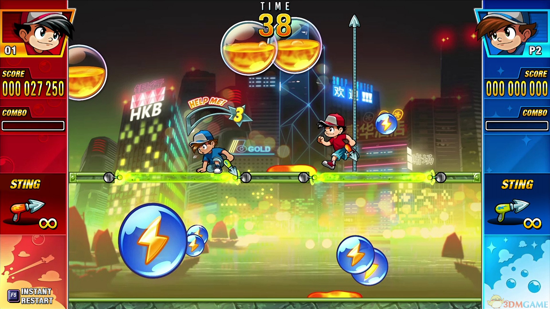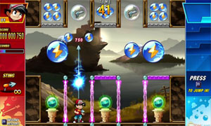 游戏中玩家需要带领两位兄弟在全球各地执行任务,扮演一个面对卡通外星人入侵的年轻英雄,要操纵角色使用对气球进行攻击,每次击中时,一组弹跳球会爆炸并分成较小的弹跳球,你击中的次数越多,你落地时被击倒的可能性就越大。