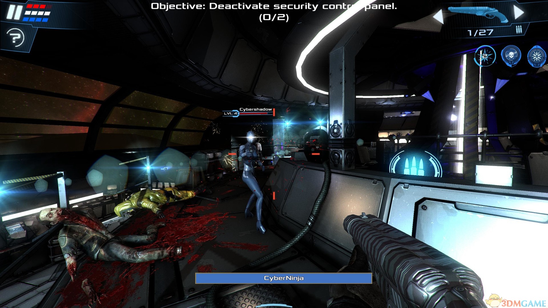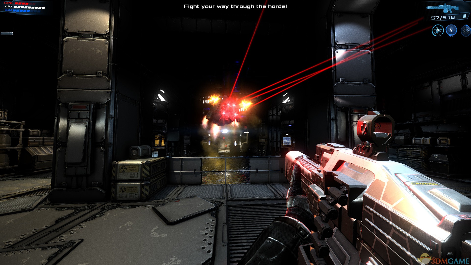2、玩家可以使用两种武器,分布是射程相对远的枪械和一个可发射电流的近战武器;