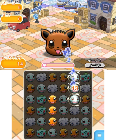 0人《口袋消除》是 一款休闲益智类的游戏。本作与之前的《口袋妖怪 战斗方块》有些类似,但又不同。在本作中玩家可以用自己手中的口袋妖怪在下屏上移动,当遇到野生的口袋妖怪时即会发生战斗。本作中除了如《口袋妖怪》中的相性与能力进行口袋妖怪育成之外,“MEGA进化”这一要素也得以保留,有效利用的话可以使战斗更加有利化。