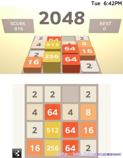 《2048》是一款家喻户晓的益智类游戏作品,游戏在推出了手机、PC等多个版本后玩家也可以在3ds平台上玩到了,游戏规则就是通过不断将数字叠加凑出数字2048即可过关,游戏还是非常考验玩家的耐心和思考能力,喜欢游玩益智类游戏的玩家不妨可以试试看噢~