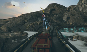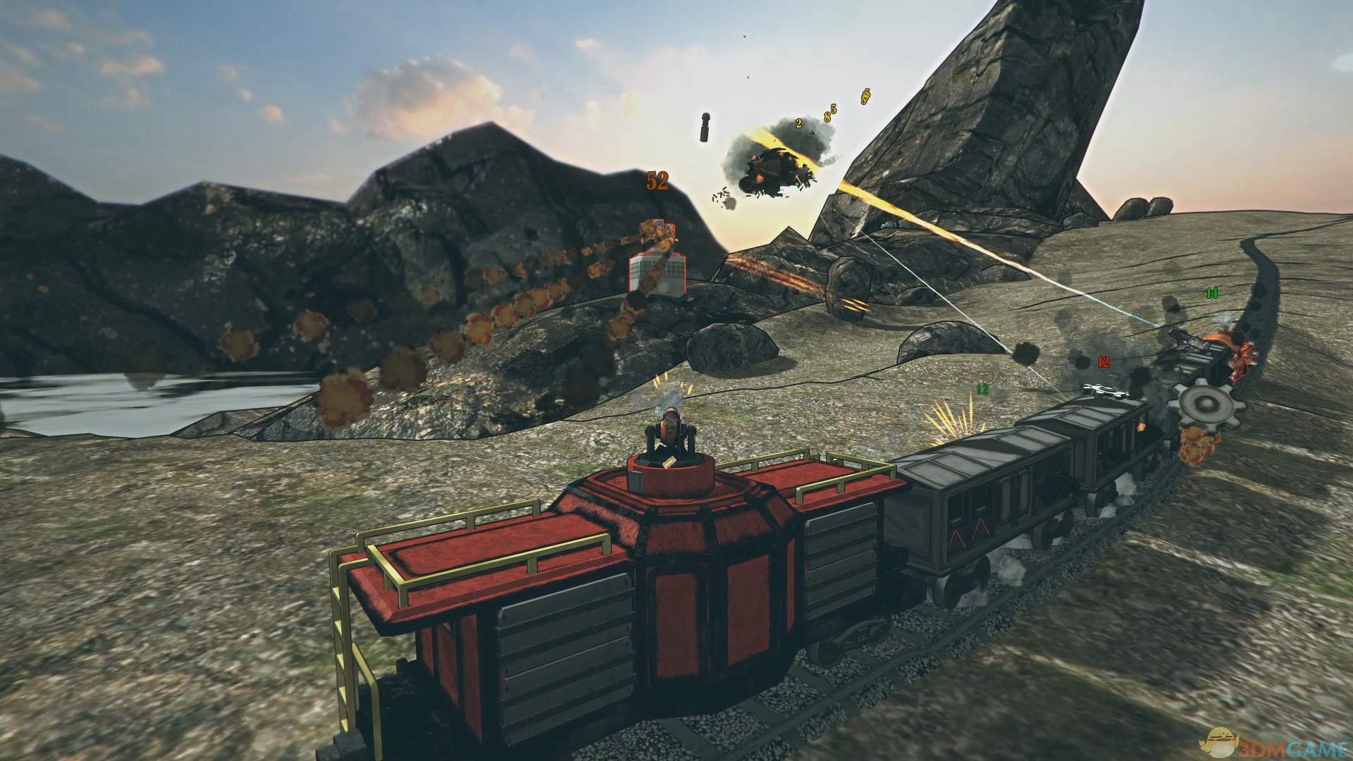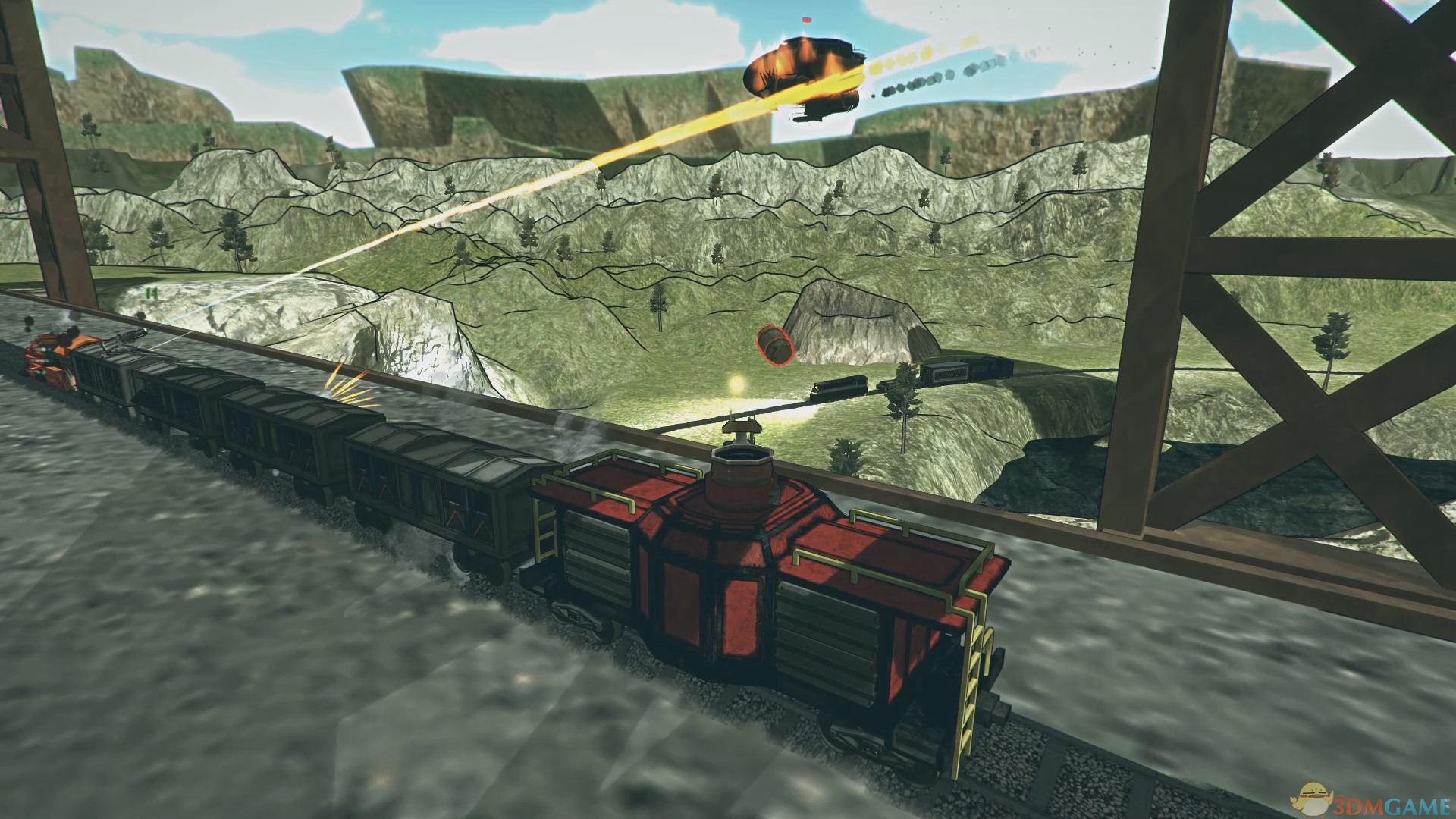 当你在轨道上正常行驶时会有各种飞船飞艇来攻击你,使用火车上的机枪等攻击它们。