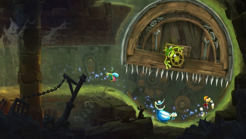 玩家操控雷曼等角色在2D横版场景中奔跑、跳跃、攀爬,穿越各种地形,如悬崖、河流、洞穴等,同时要躲避尖刺、深渊等致命陷阱。