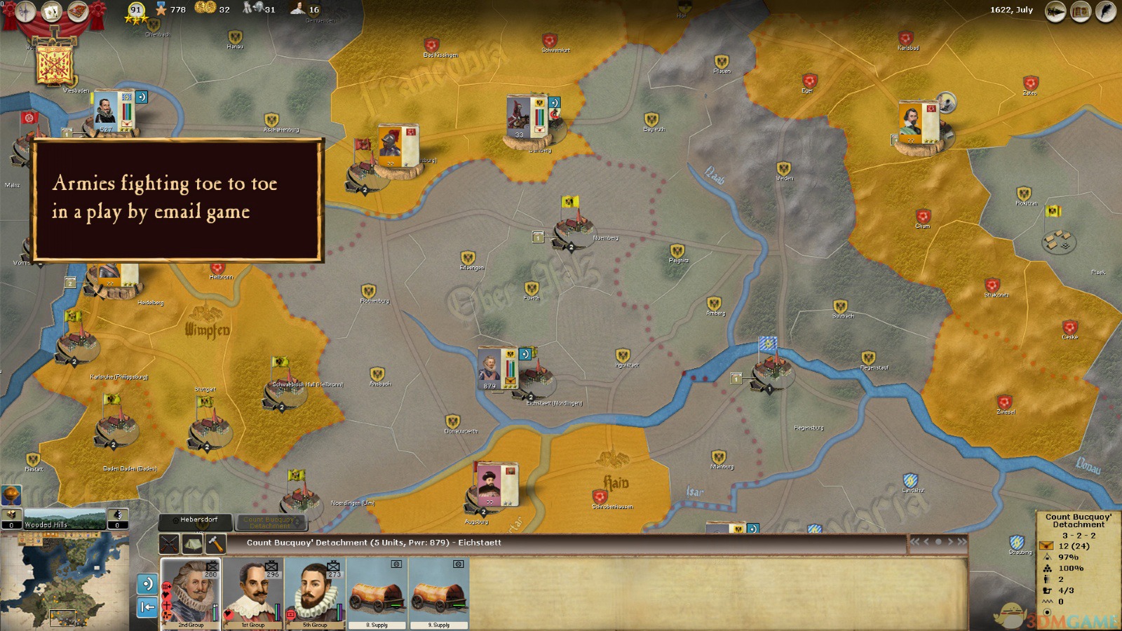 游戏涵盖欧洲大部分地区,从西海岸到伏尔加,但第一个场景集中在德国、丹麦、法国部分地区,以及荷兰和波西米亚。