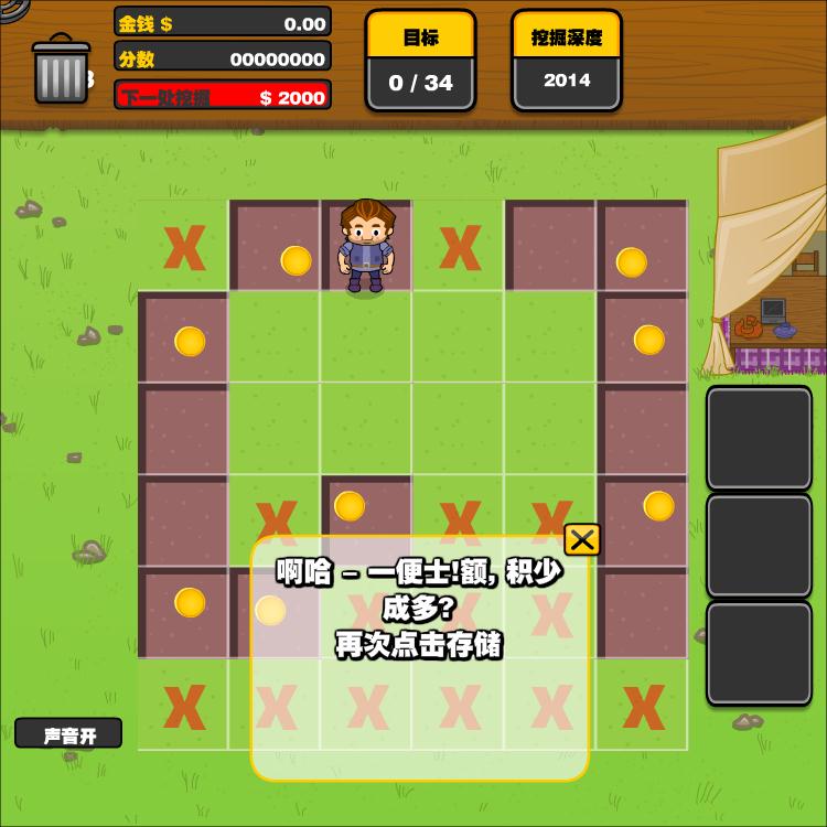 游戏中,听说村子周围有好的金币,小男孩每天都去挖金币,他把挖到的金币,买更多的挖地机器,喜欢这款游戏的小伙伴们,一起来试试看吧!