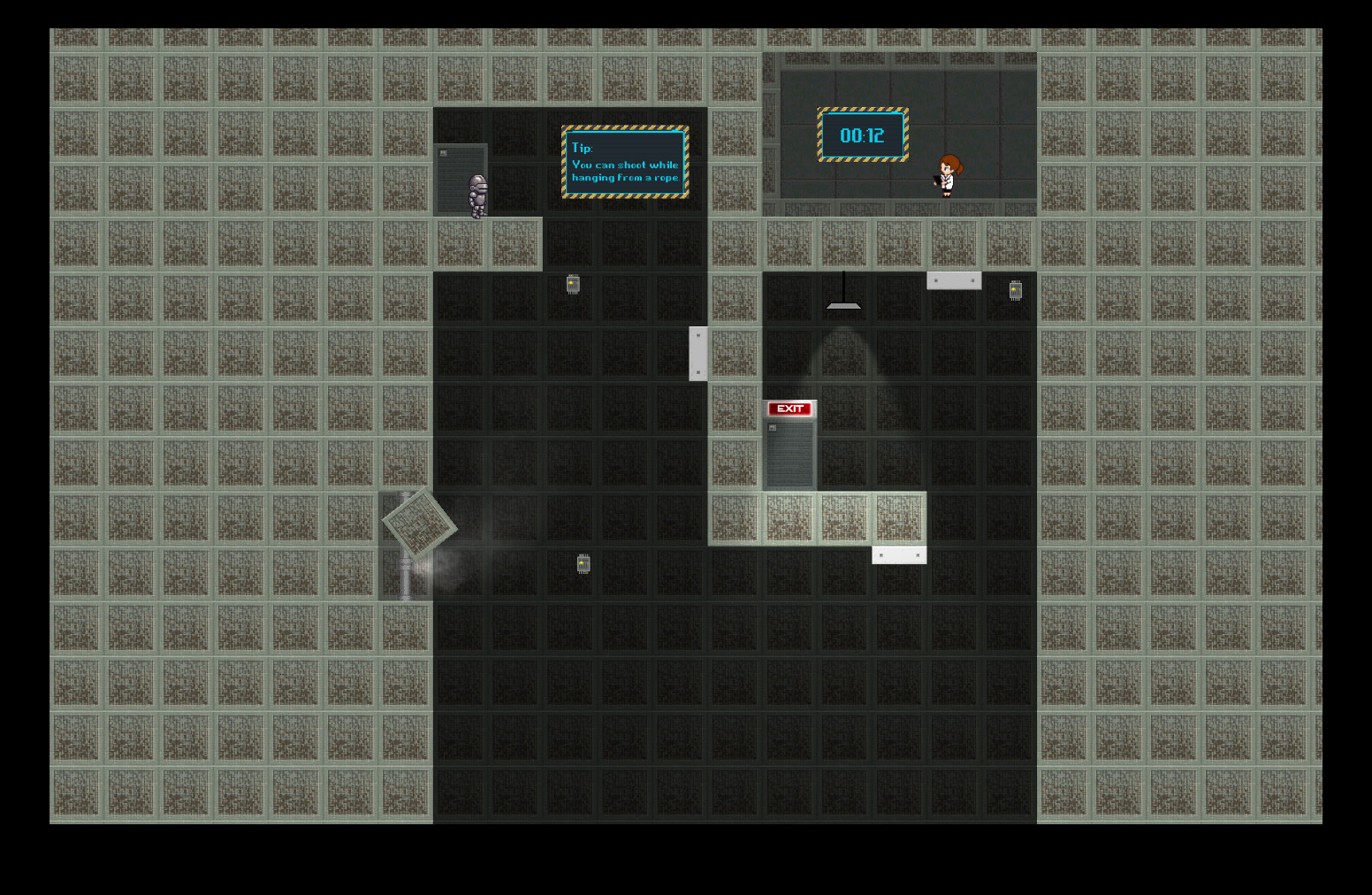 在游戏中你可以让机器人发射弓箭,这个弓箭不是拿来攻击敌人,而是把弓箭射到白色墙壁上固定住,你可以踩着弓箭往上跳。