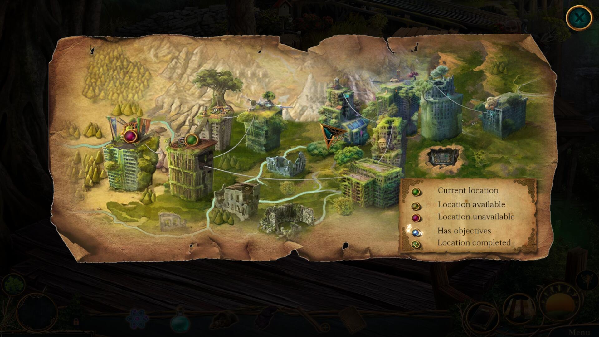 提示功能和跳过功能恢复速度一般,互动区域会不给于标示,隐藏对象谜题场景有火花提示,在地图上会有可互动区域的地点标示,在进行隐藏对象谜题时会有轻微的错误点击惩罚。
