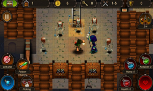 游戏画面是美式卡通风格,讲述了勇者在地下城冒险的故事,游戏中有三种角色可供选择,消灭敌人得到宝藏提升自己!