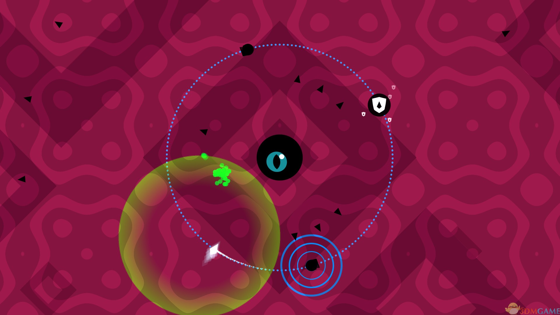 玩家要控制眼球顺时针或逆时针运动,躲避来自外部的攻击;