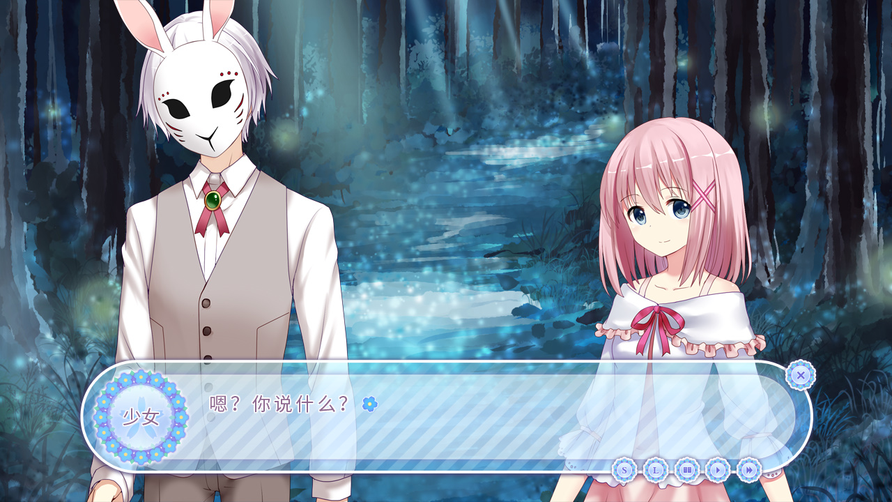 游戏讲述了想不起过往的失忆少女与带着兔子面具的未知少年之间的故事。