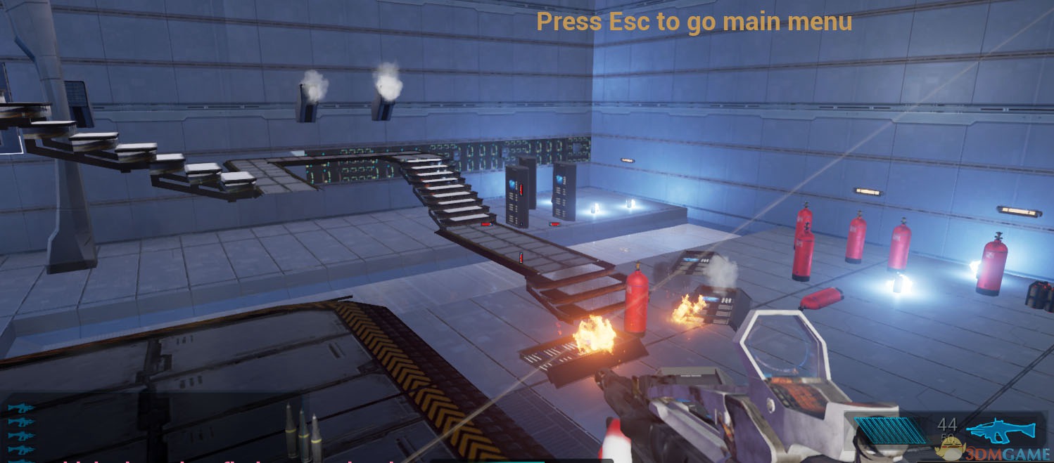 你有激光武器和熔岩发射器两种武器,自由使用它们。