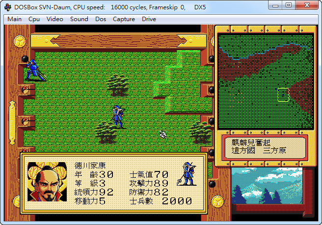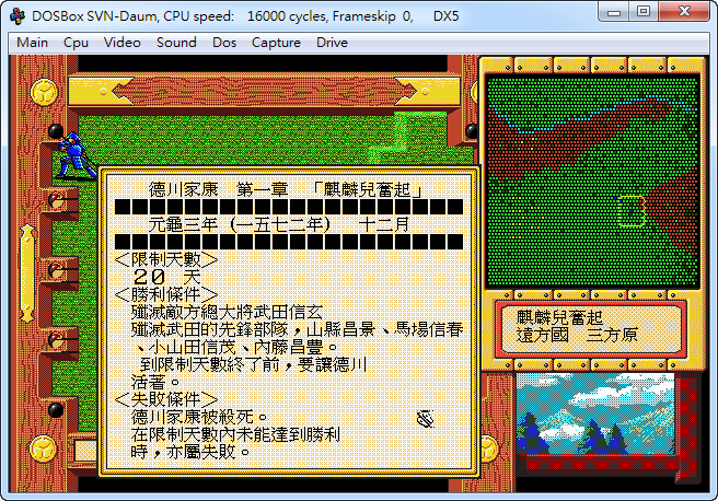日本Family Soft公司92年在日本的PC98计算机上推出的一款改编历史的策略战棋游戏,并且由台湾彩虹高科技移植以及繁体中文化改版制作到MSDOS平台上,剧情是以日本战国时代着名人物德川家康为主角的战棋类游戏,风格上和光荣出品的英杰传有点相似。该作为日本PC-9801系统的电脑DOS移植版。讲述德川家康从三方原合战到大坂夏之阵所经历的战役。