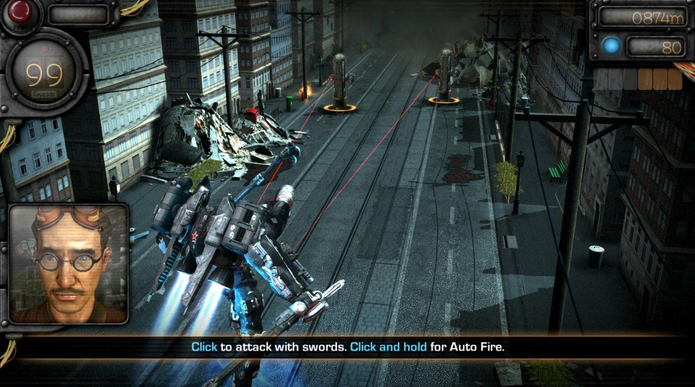 玩家将驾驶机甲在城市中穿梭,并一路寻找各式武器进行建筑物的破坏以及与敌人进行机器人大战,同时可以像变形金刚那样进行两种形态的切换!