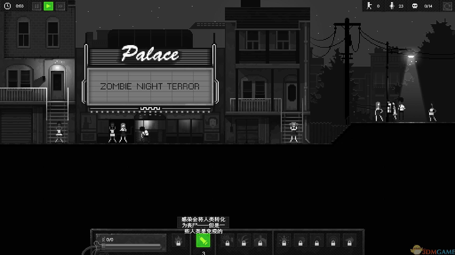 《恐怖僵尸之夜(Zombie Night Terror)》是一款动作策略类游戏,玩家在游戏中将会拥有控制僵尸的能力,首先感染第一个人类,进而战略性扩张,但是,到达一定程度的时候人类将会展开对抗,武装部队的打击,玩家会赢得游戏吗,值得一提的是,游戏虽然是低像素画质,但是也非常的好玩,一起开始自己的僵尸之夜吧。