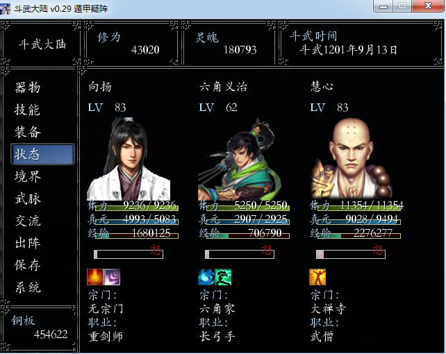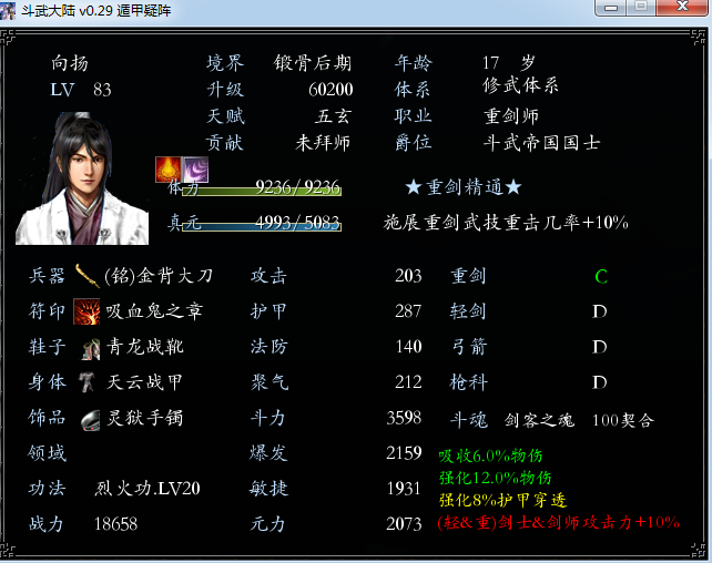 向扬:也就是我们斗武大陆游戏的主角,从小没有修行天赋,但头脑聪明,临危不惧,极其擅长抓机会,命运在北屏山上发生了改变。
