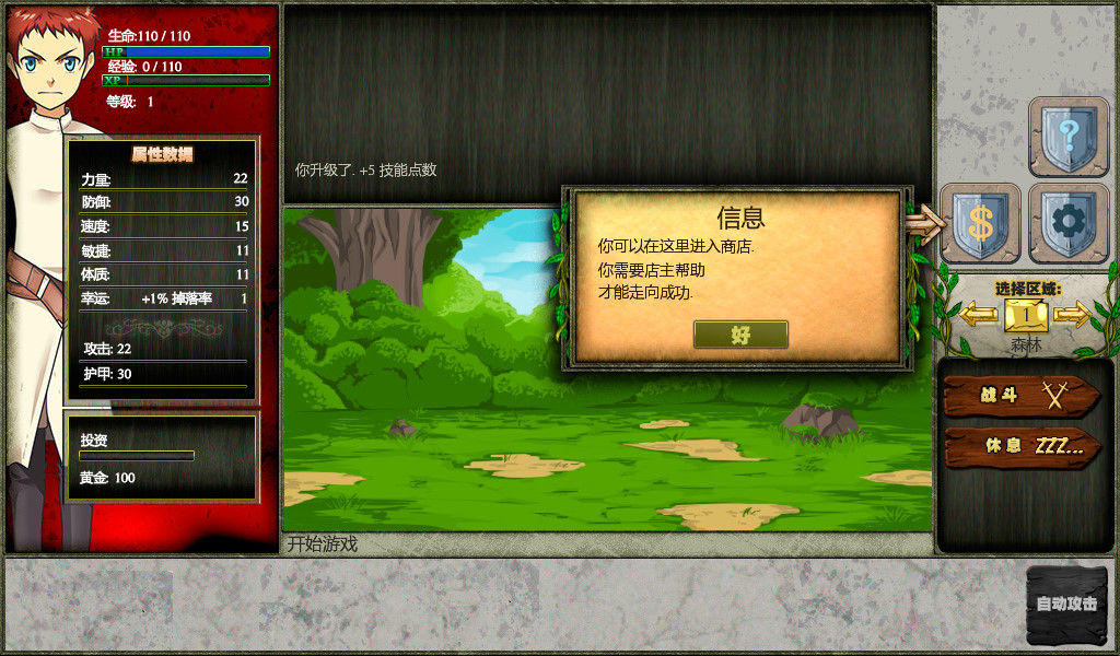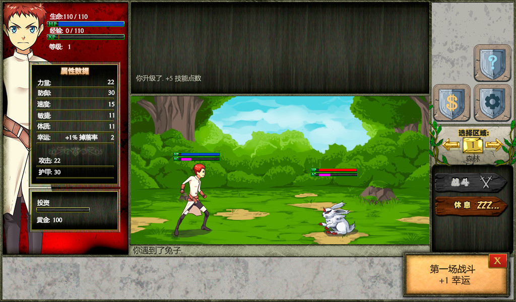 《梦幻王座Thrones of Fantasy》是一款放置flash类游戏,想当上国王先要学会打兔子,这是泥萌最爱的读条放置游戏,国王游戏第50关就是打国王,戏本质就是打怪,各种凌虐兔子,偶尔有老鼠,可以去商店花钱开自动攻击,失败后需要重新开始攻击,自动攻击死亡5次后可以花100G升级,以后就能一直自动了。