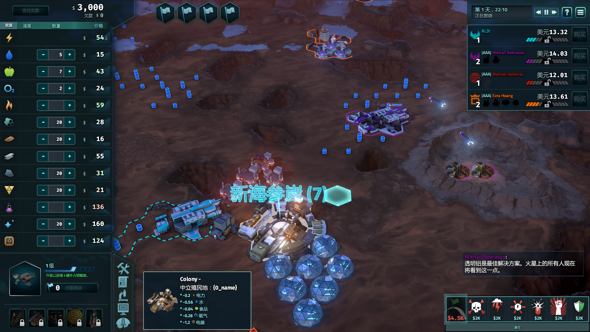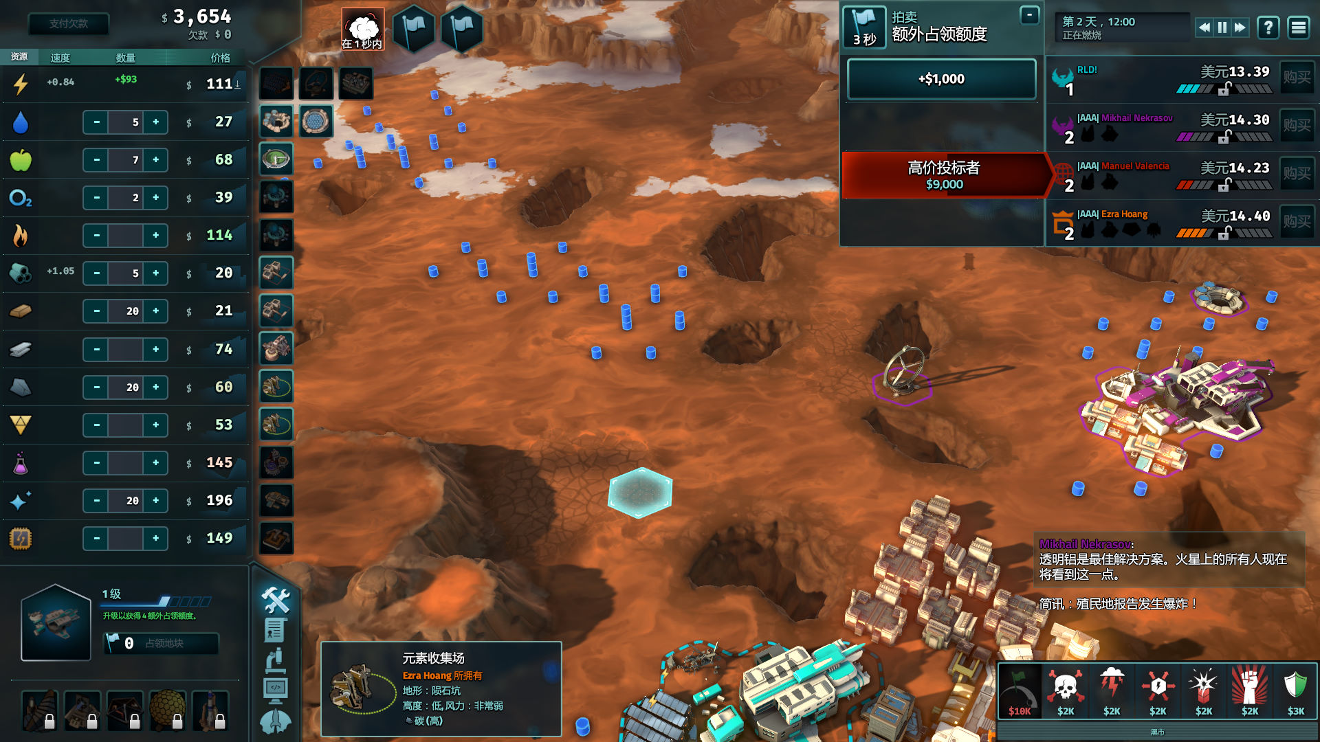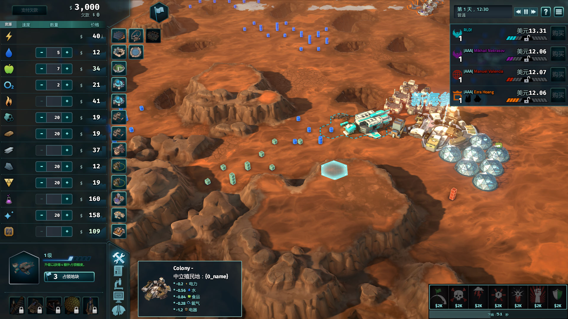 简中《外星贸易公司(Offworld Trading Company)》是以即时战略元素为主要内容的一款游戏,本作的制作发行是由Mohawk Games和Stardock Entertainment联合完成。游戏中你不能偏安一隅,要快速的发展,获得收益,金钱就是你最强大的武器和防御。