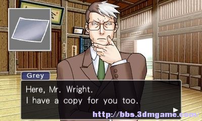 《逆转裁判123:成步堂精选集(Phoenix Wright: Ace Attorney Trilogy / Gyakuten Saiban 123: Naruhodo Selection)》由于本作平台提升为3DS,所以其画面的分辨率与之前相比得到了很大的提升。本作将对应3D立体视,由于可以很清楚地看出画面的纵深感,因此不管是法庭部分还是调查部分都会带来很强的临场感。另外,本作中不止是日文版,三部英文版也将完全收录,对于不懂日文而了解英文的玩家来说绝对超值,而且还可以对比不同语言版本之间的区别。