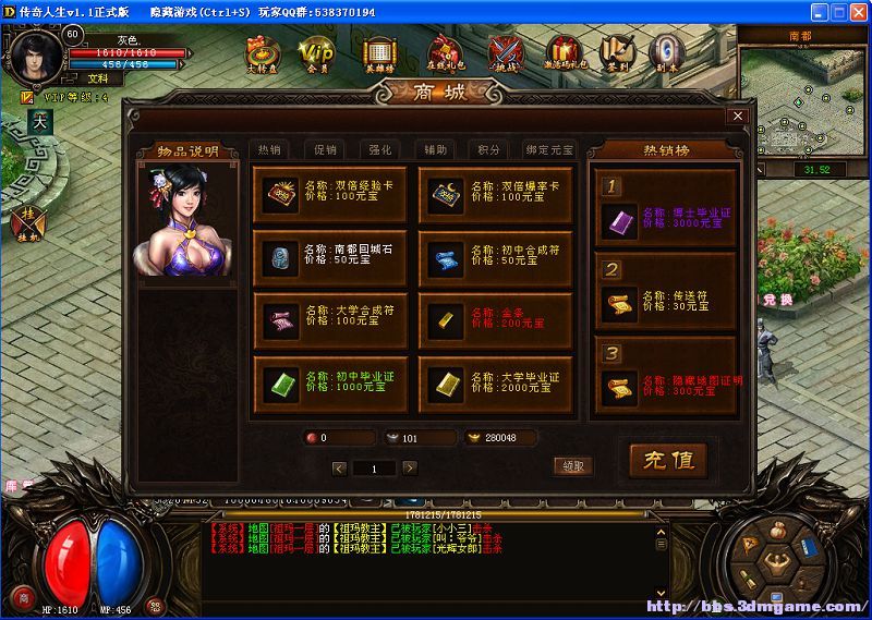 1.游戏功能:装备强化.套装分解.套装合成.装备回收.免费挂机.