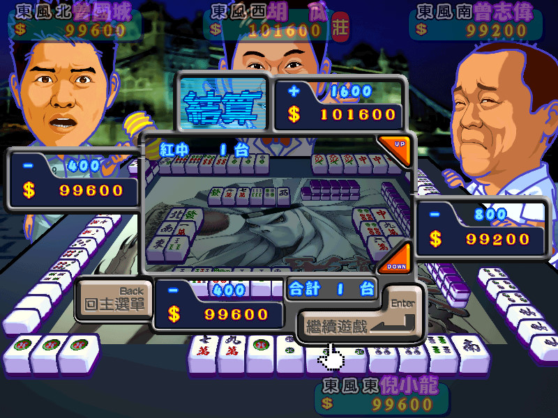 游戏过程中充满了紧张与刺激,不时有陷阱等着您,玩家要尽量胡出提示的牌型才能过关斩降,一切就只有靠您的手气了来定输赢了。而在冠军争霸游戏过程中,会有地图指示前进路线,每一关里都会出现知名的明星艺人来把关并加以阻扰玩家,您的目标就是称霸整个亚洲成为赌王,准备好了吗?