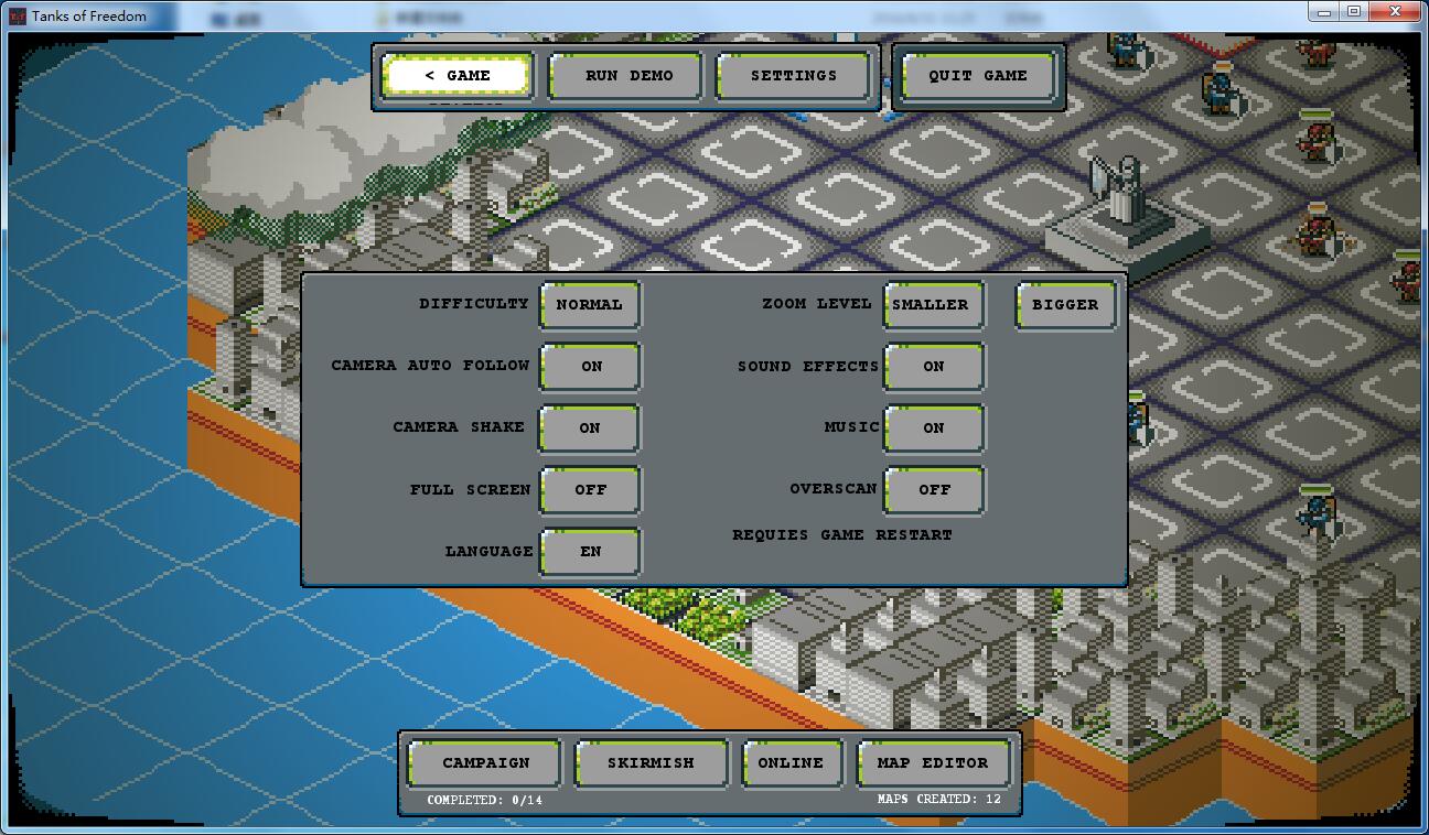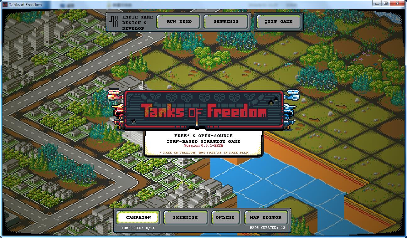 《自由坦克(Tanks of Freedom)》是由p1x.in制作的一款策略类游戏,款比较迷你的策略战棋游戏,像素风格的游戏画面,操作非常简单。游戏玩法上类似知名的掌机游戏《高级战争》。简单的操作中指挥着坦克大军进行现代战争。