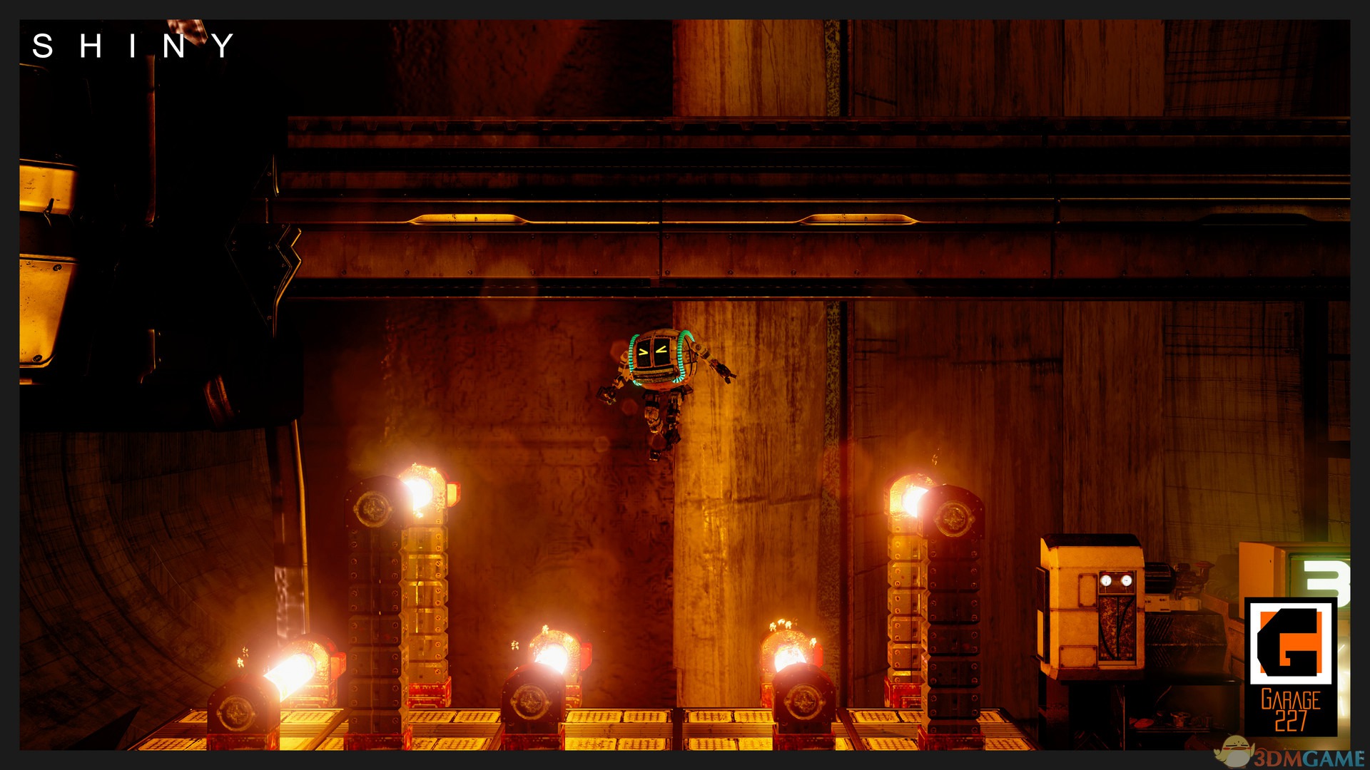 《闪耀(Shiny)》是Garage 227制作的一款横版动作冒险游戏。机器Kramer227留在了人类灭绝的星球奥罗拉上,他必须找到得到能量并拯救他的同伴。在旅途中,Kramer需要调查这片星球并克服一切的困难险阻,同时要储存他有限的生命能量来支撑自己和同伴到达安全的地方。玩家将跟随机器人Kramer一起,收集和分享能量,帮助机器人伙伴们脱离困境。