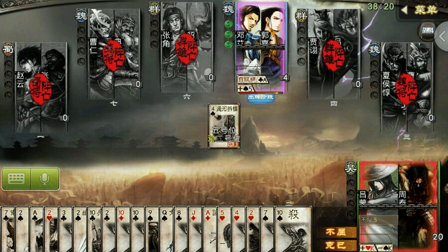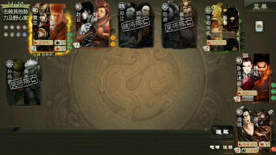 简中《三国杀(Legends of the Three Kingdoms)》是由中国传媒大学动画学院04级游戏专业学生设计,由北京游卡桌游文化发展有限公司出版发行的一款热门的桌上游戏,并在2009年6月底由杭州边锋网络技术有限公司开发出网络游戏。