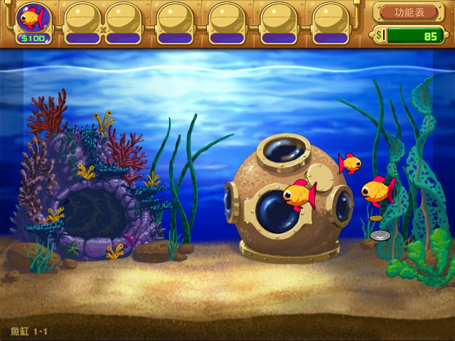 繁中《疯狂水族馆(Insaniquarium)》是由PopCap Games制作的一款休闲益智类游戏,游戏中,喂鱼,打怪,升级武器,并且在探索20个新级别和4个独特的水池时,解开宠物的秘密!买鱼,赢宠物,并且在探索海底世界时解开隐藏的秘密。然后你可以把虚拟的池塘装上自定义的鱼,做成自己专有的屏幕保护
