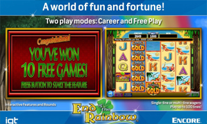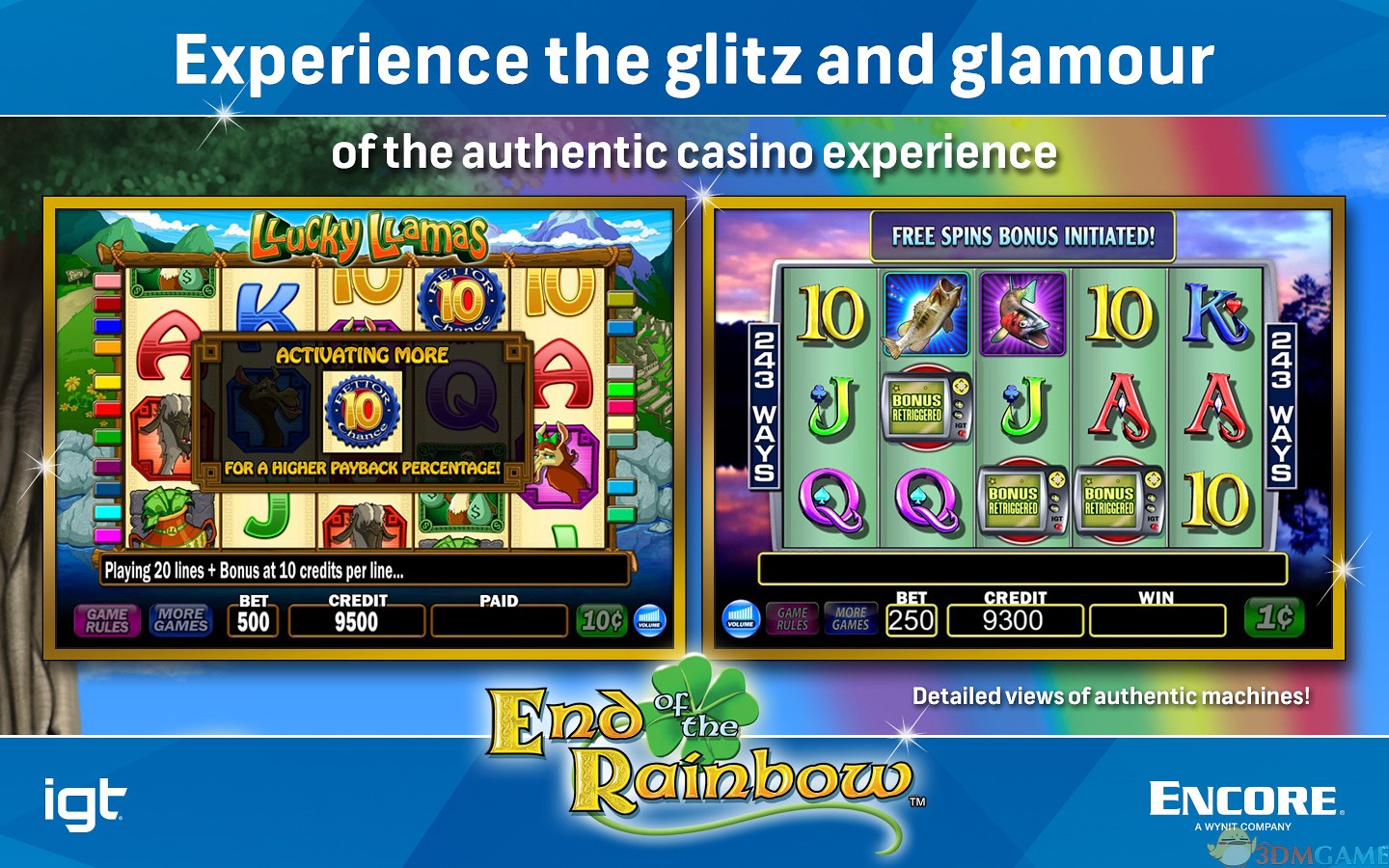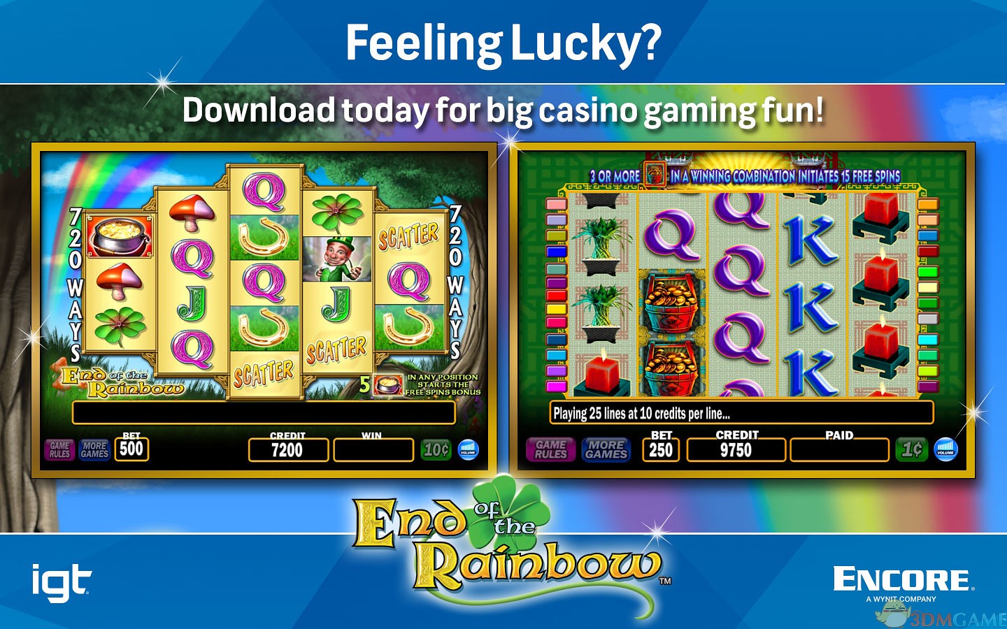 《IGT游戏机:彩虹尽头(IGT Slots End of the Rainbow)》是由Encore制作发行的有一款“IGT游戏机”系列的作品,游戏继承了该系列作品的经典玩法,以老虎机为主题,轻松休闲,玩家只需选择压上相应的分数,按下按钮或者是拉动摇杆即可开始游戏,根据最后停下的结果获得相应的奖励!
