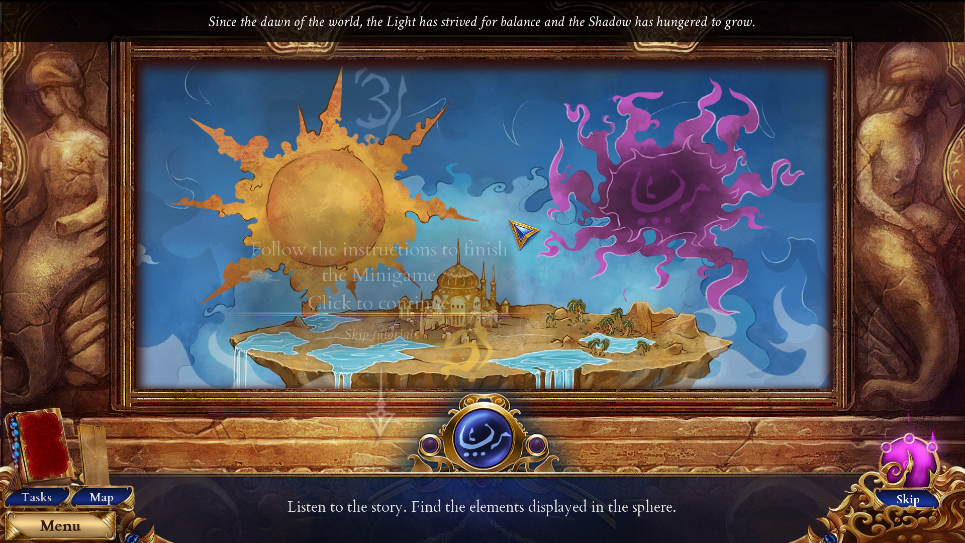 《一千零一夜:奇迹之沙(Persian Nights:Sands of Wonders)》是由ARTIFEX MUNDI制作的一款全新的解谜冒险游戏,这款游戏将玩家带入神秘的波斯,玩家需要帮助女主角塔拉,踏上了寻找疾病的原因和治疗方法的旅途。根据预言师的指示女主来到某神殿寻找线索,解决各种机关后却意外遭遇神秘男和大巫师互怼……神秘男和神器究竟有什么秘密,大巫师的邪恶计划是什么?女主忽然获得的神秘力量又是……?
