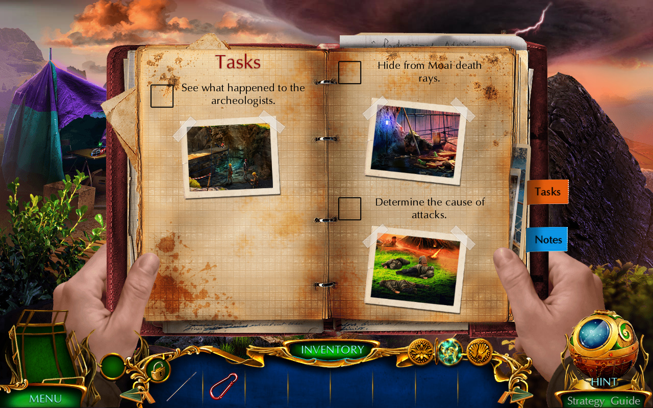 1人《世界迷宫5:复活节岛之谜(Labyrinths of the World 5:Secrets of Easter Island)》是由Domini Games制作的一款冒险解谜类游戏,主角好不容易放个公休跑到复活节岛玩,突然间天地变换风起云涌……火山口冒出个石巨人发大招,摩艾石像全体复活到处发射石化激光……冷静的主角·侦探当机立断去不远处塌方的挖掘现场给予帮助。