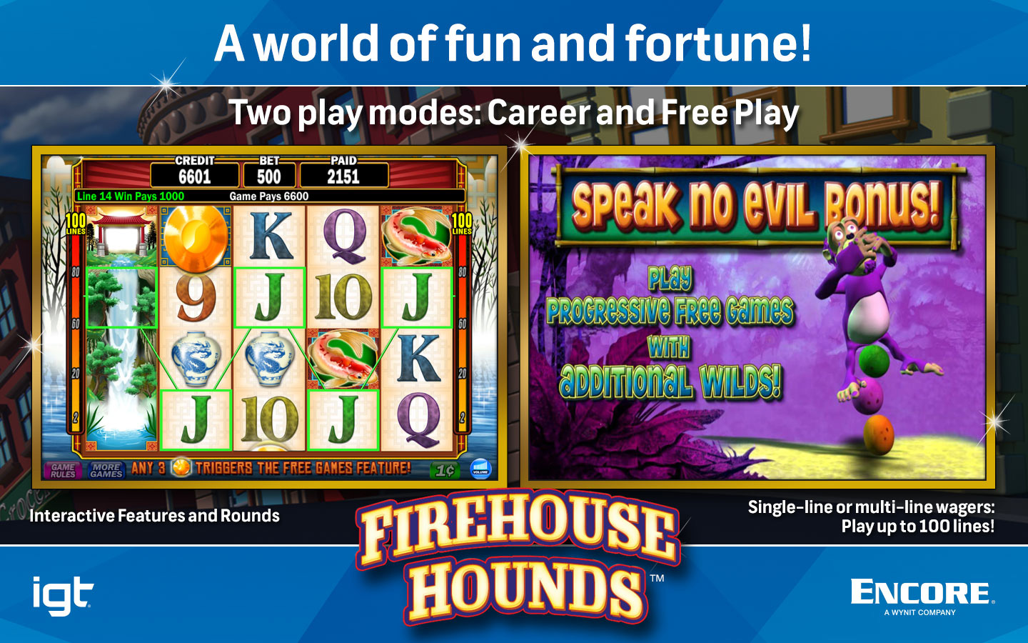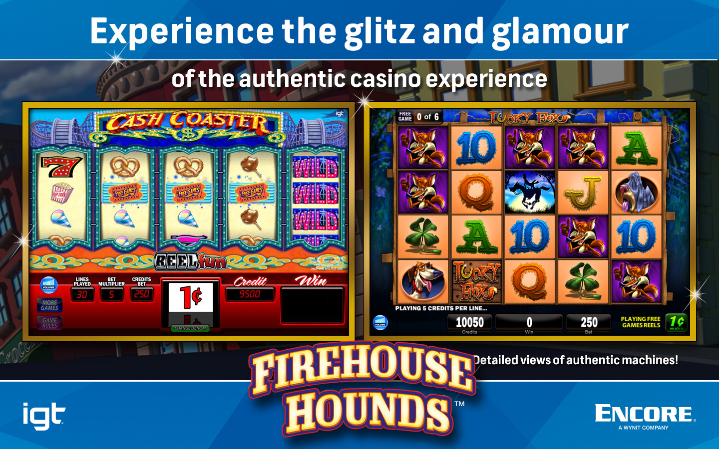 《IGT游戏机:消防犬(IGT Slots Firehouse Hounds)》是一款由Encore制作的益智类游戏。以老虎机为主题,轻松休闲,玩家只需选择压上相应的分数,按下按钮或者是拉动摇杆即可开始游戏,根据最后停下的结果获得相应的奖励!