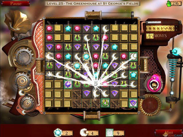 《古董商店:失落的宝石-伦敦》这款游戏是由iwin制作发行的益智类游戏。与其它消除类不同的是,本作场景比较特殊,有点倾斜,带给玩家一种逼真的三维立体感,在每个场景中,都有珍贵的宝石。游戏比较耐玩,有四种模式可供选择,每通过一关就可以解锁升级特殊能力。游戏整体难度适中,上手难度也不大,绝对是打发无聊时间的不二之选。