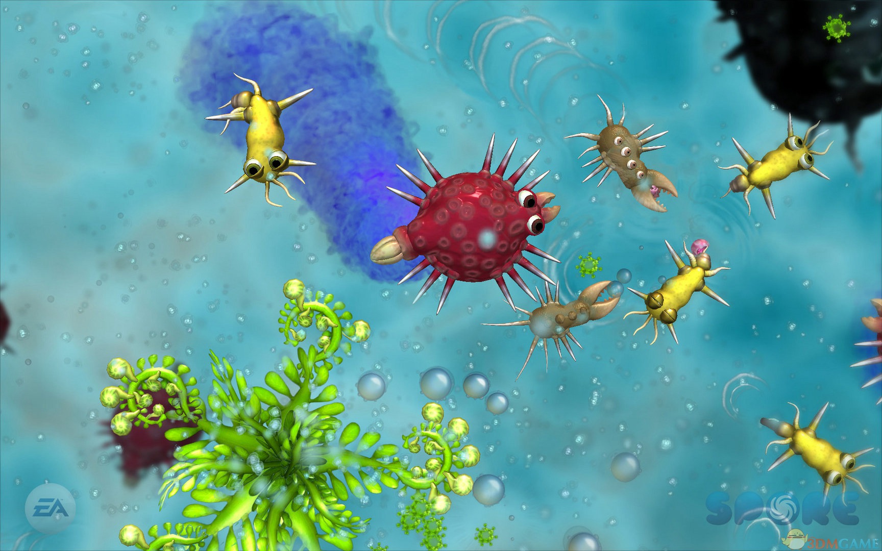 玩家要先从数十亿年前的单细胞生物开始,逐渐进化成多细胞生物,再进一步发展大脑功能,最后产生群集生物,体验生命进化的过程。此外,游戏也具备战略要素和简易编辑器,玩家可控制生物发展文明,甚至可以透过武力而征服其他星球。至于游戏编辑器,则能让玩家自己设计游戏内容。