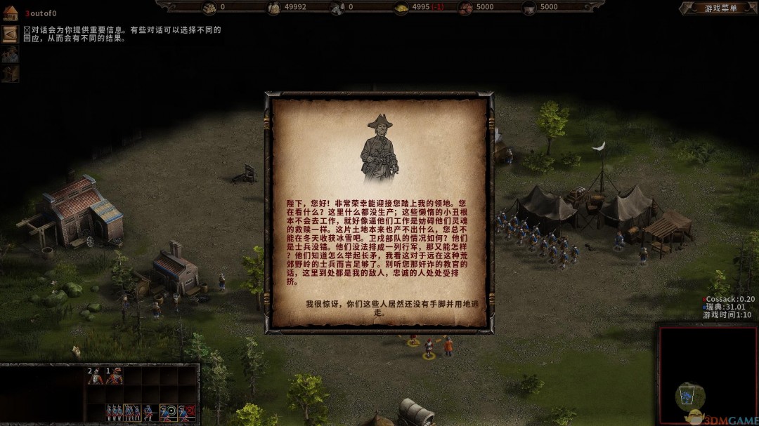 《哥萨克3》的时代背景设定在17-18世纪的欧洲。游戏以当时欧洲的大规模战斗为蓝本,涉及众多国家与势力,如法国、英格兰、俄罗斯、乌克兰、普鲁士、奥地利等。哥萨克人世世代代游牧在东欧大草原,他们组成的骑兵是独立的武装力量,在克里米亚汗国与俄罗斯的领土战争等历史事件中扮演着重要角色。玩家将置身于这个动荡的时代,带领自己选择的国家或势力,参与到激烈的战争与政治博弈中。