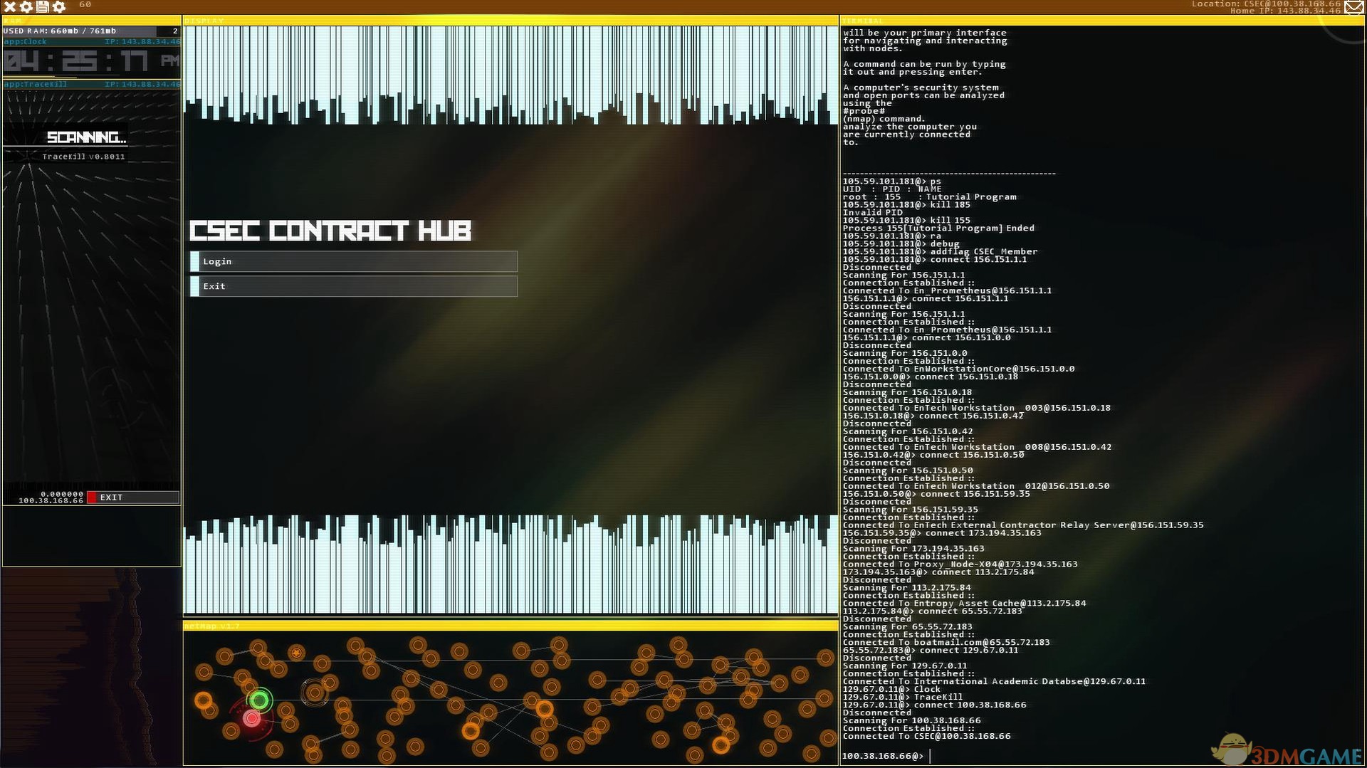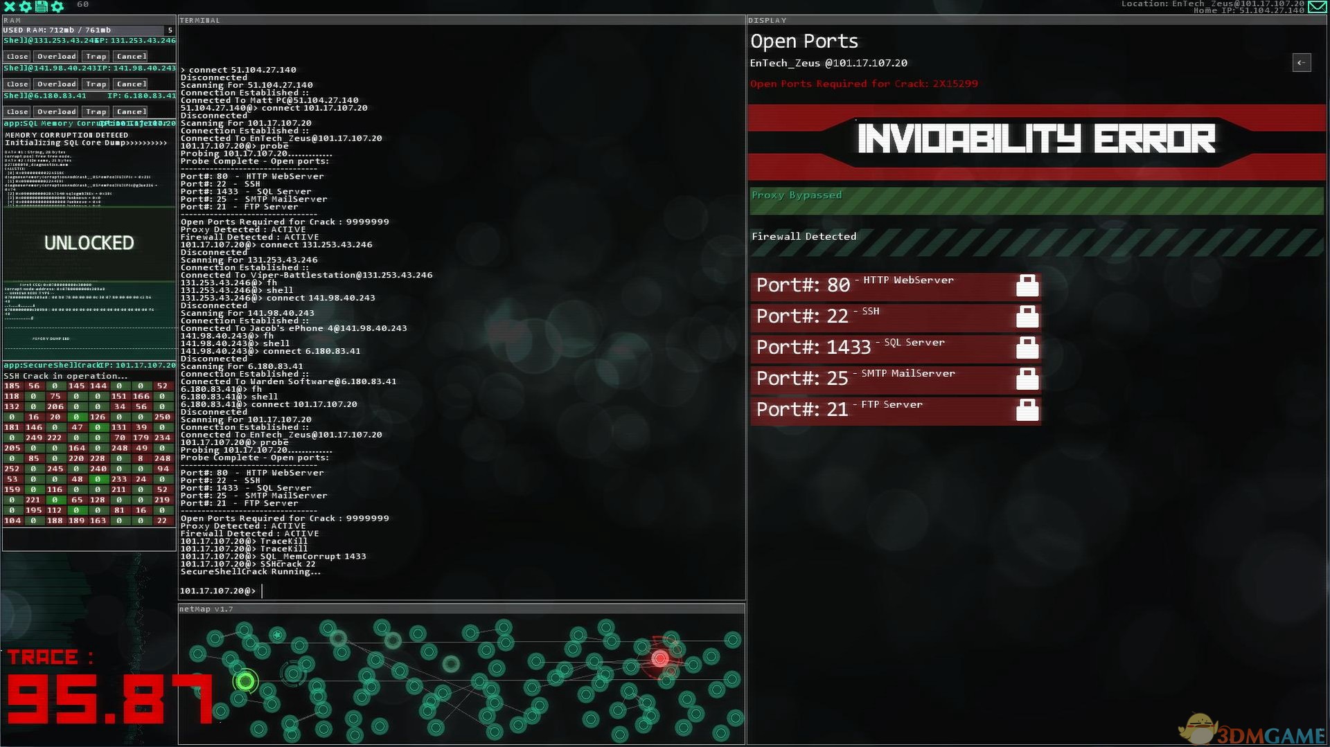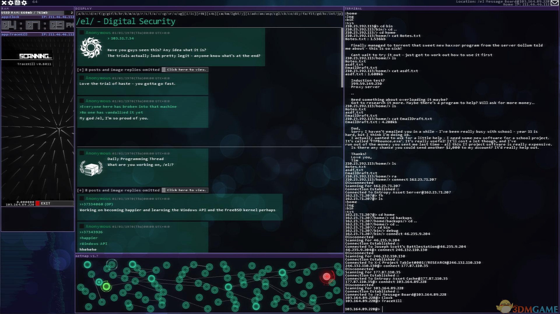 你将会被带入一个无尽的虚拟黑客世界,在这里没有"级别"或者是明显的游戏元素来打破这一体验。你可以选择跟随Bit的邮件的指引,或是直接遨游在整个服务器网络之中,探索并追寻信息的蛛丝马迹。