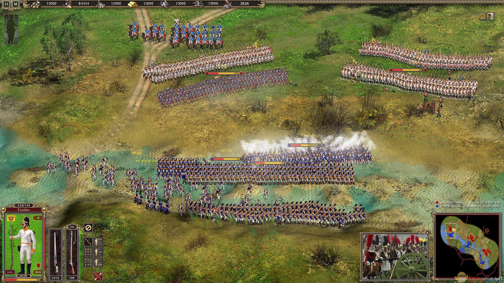 兵力单位包括步兵方阵,骑兵队,炮兵。而之所以为大家介绍这种模式,是因为在这种通过连续作战积累经验以及对有限单位的运用。恰恰可以充分展示游戏中各国的军事特点和各兵种特性。