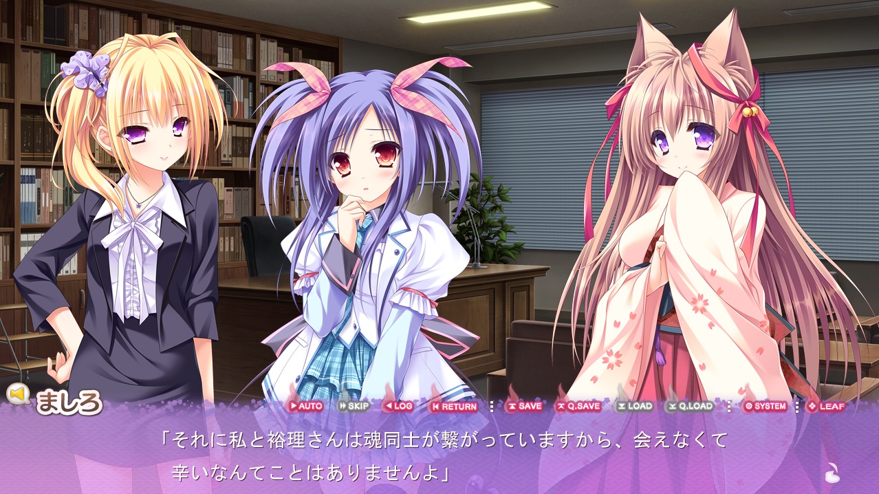 在远离苇原町的山间小镇, 讲述人和太转依共存的崭新故事在此上演 ──与你结合 这唯一的誓言 就是我的一切── 美少女游戏品牌Lump of Sugar旗下招牌作品『游魂』的续篇。