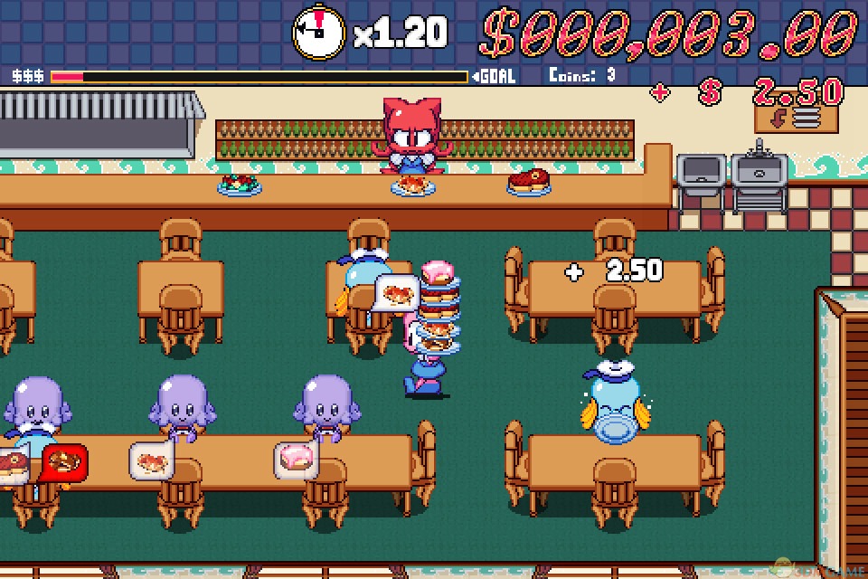 游戏本身采用卡通风格,整体画面制作精美,场景刻画和游戏内容也十分优秀,搭配独特的题材和简单的操作相信也会给玩家带来不一样的游戏体验,总的来说是一款非常适合打发时间的游戏。游戏中你作为一个服务员,要为每一位顾客上餐,而且不能撞到他们,不然就有可能会丢掉你的工作哟。