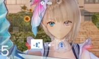 粉色的卷发,蓝绿色的眼睛,较大的乳量,