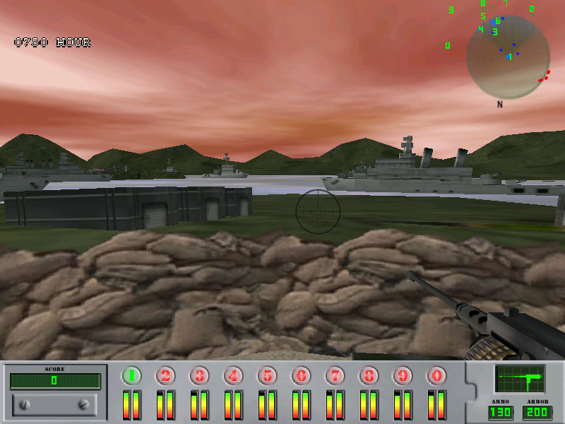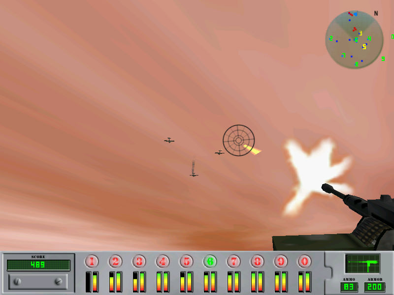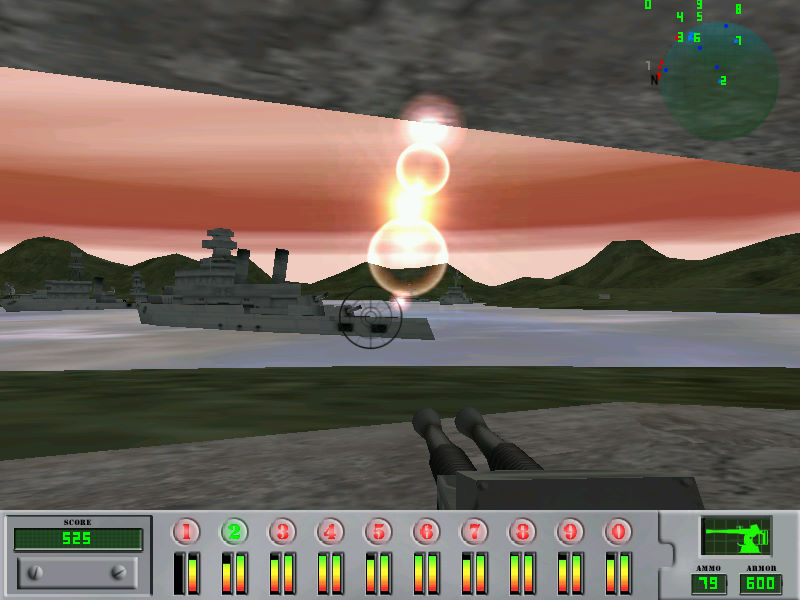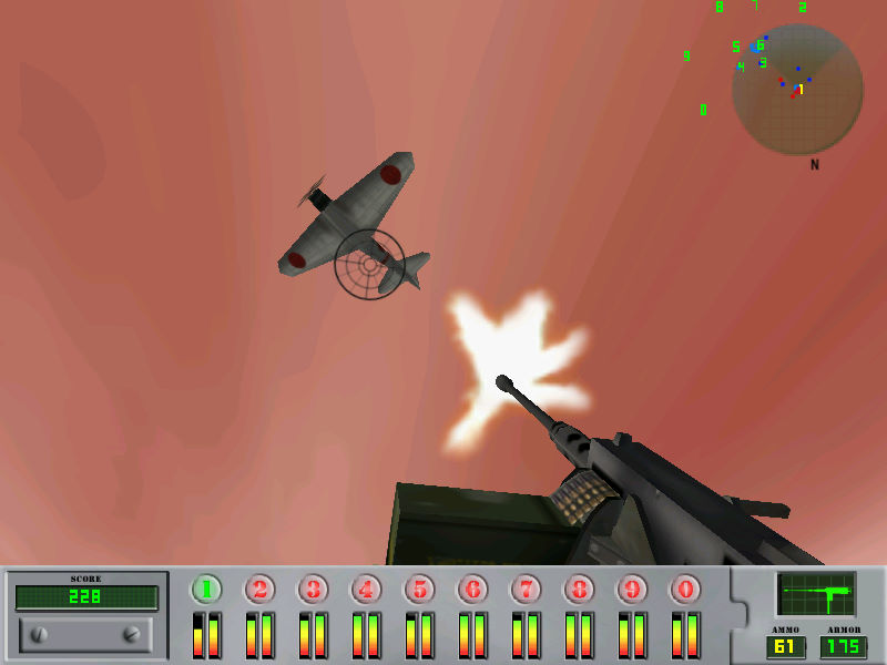 玩家在游戏中扮演的是一名军舰甲板上的机枪手,任务就是保护军舰不被日军击沉。游戏一开始玩家将会操纵50口径对空火炮,随着关卡的进行,武器会越来越多,从最普通的机枪到杀伤力最大的火箭,都可自由使用,玩家只需要按下相对应的按键就可以变换武器。这些武器的杀伤力和射速各有不同。口径较小的火炮装填速度快,而口径大的火炮装填就相当慢,玩家射击一发后得等一段时间装填,才能接着攻击,不过好处就是能对飞机造成较大的伤害。